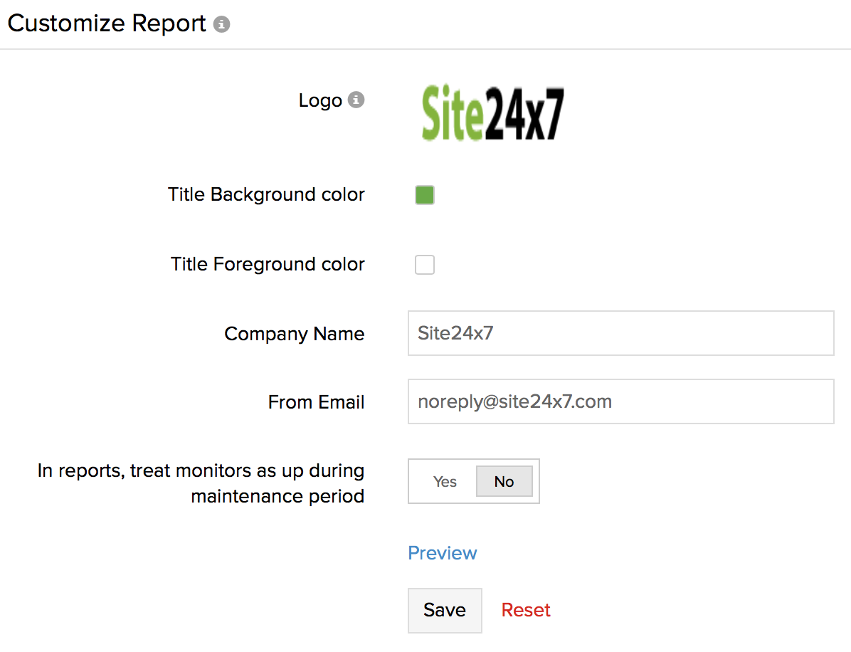 • ロゴ:デフォルトのロゴのほか、レポート用のカスタム ロゴをアップロードできます。インポートしたロゴは、アスペクト比を保存したまま、リサイズされます。