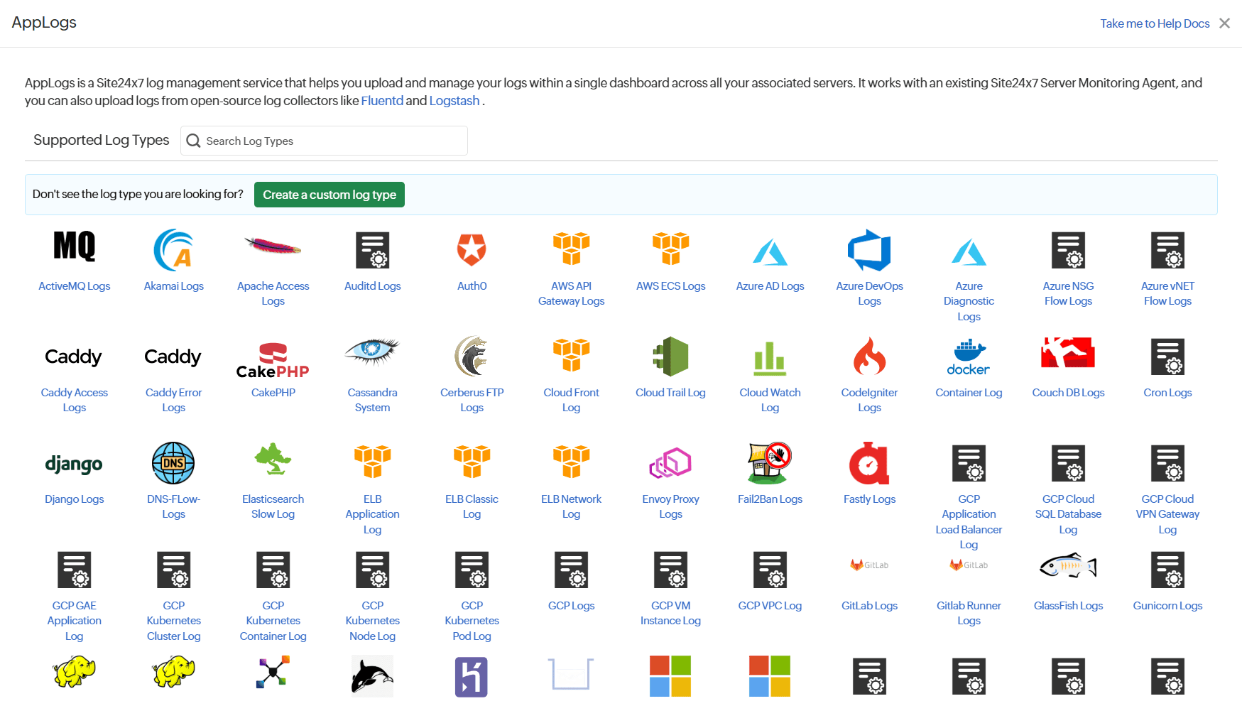 - AppLogsポップアップで、[カスタムログタイプの作成]をクリックします。