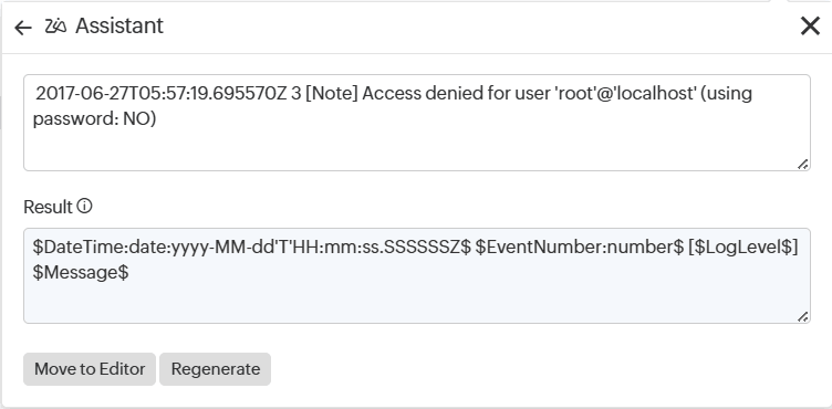 Ziaを使用してサンプルログデータのパターンを即座に生成し、構成を解析できます。