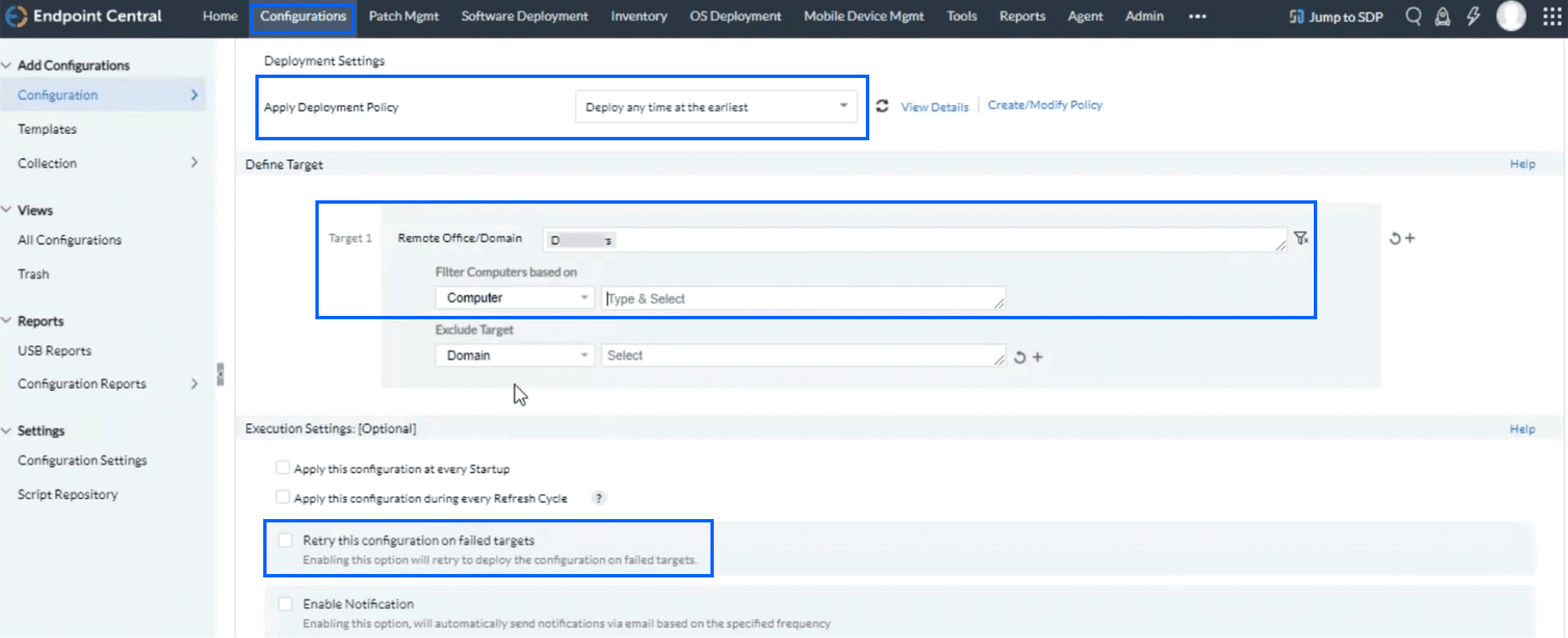 - ManageEngine Endpoint Centralポータルにログインし、[Software Deployment]タブをクリックします。