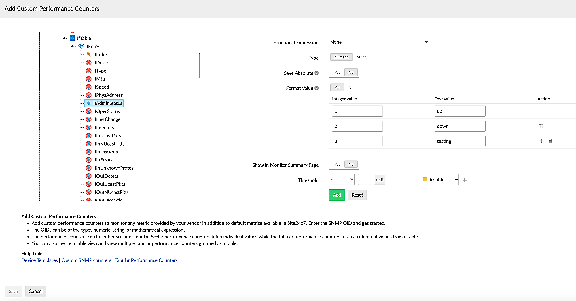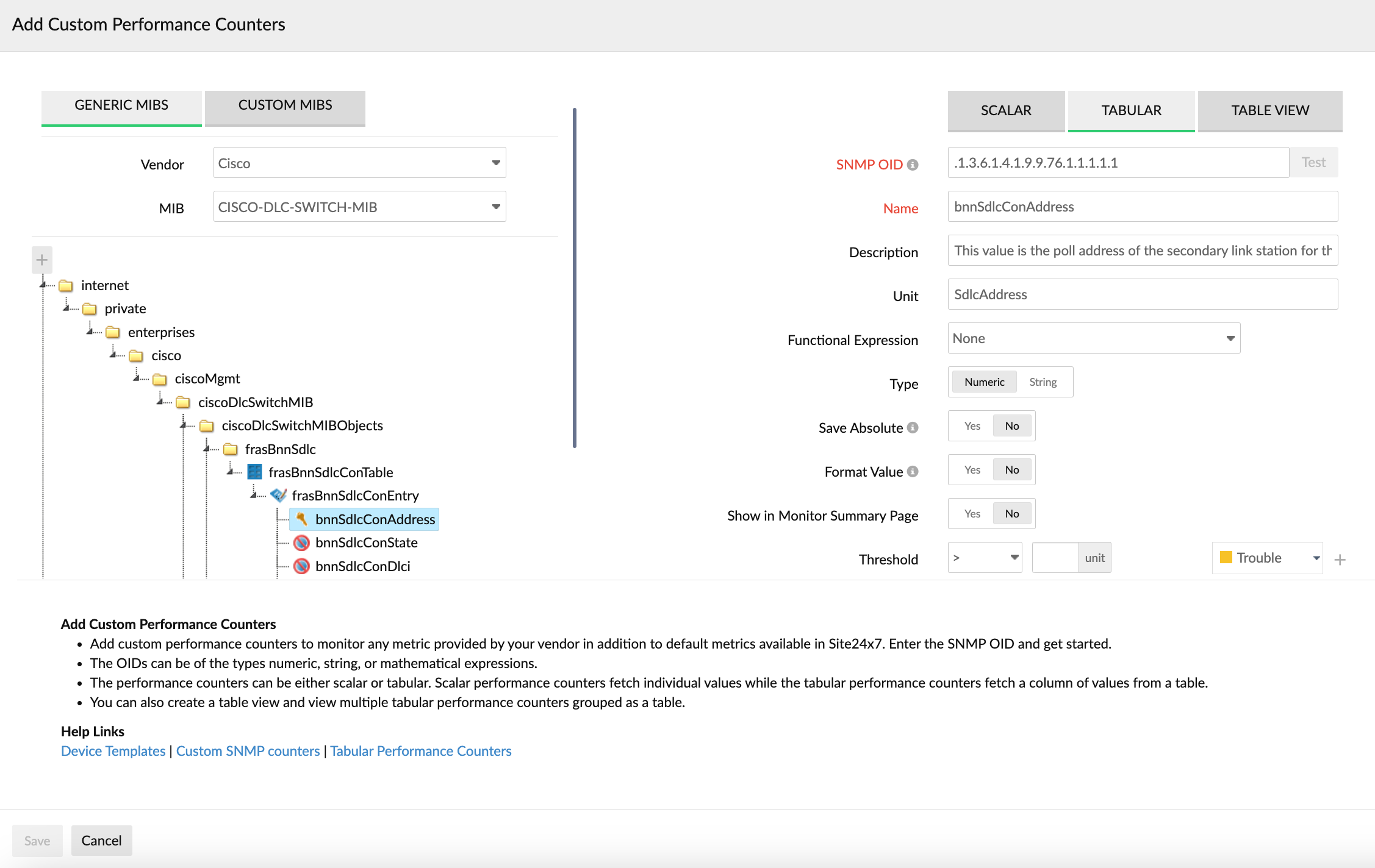 さらに、当社のカスタムSNMP監視を使用すると、カスタム装置テンプレートとカスタムパフォーマンスカウンターをサポートし、あらゆる装置と装置の属性を監視できます。