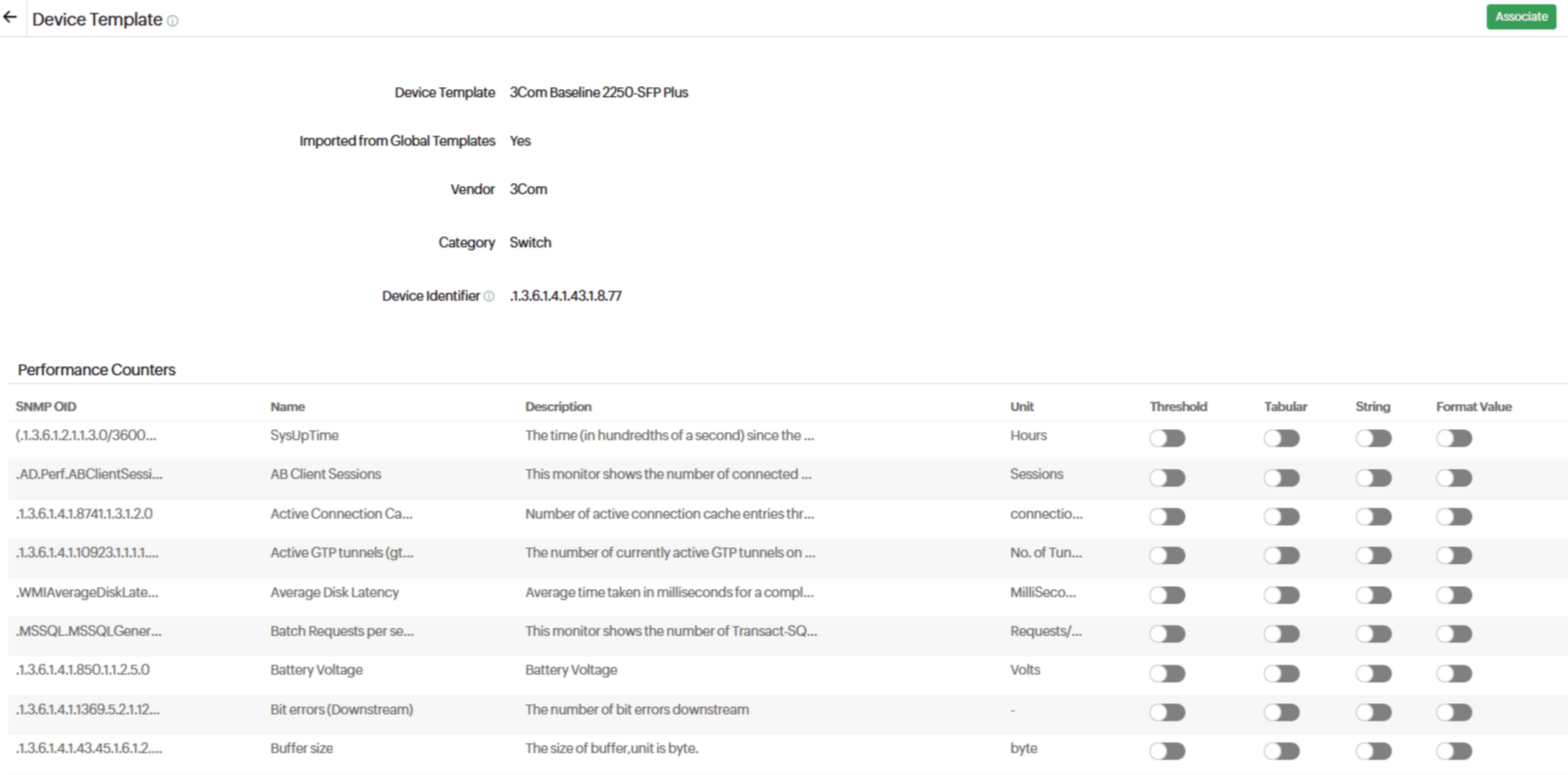 装置テンプレートビューに移動し、グローバルテンプレートタブをクリックします。目的のテンプレートをクリックします。装置テンプレートの編集フォームが開いたら、必要な変更を加えてインポートをクリックします。テンプレートは、カスタム装置テンプレートのセットにインポートされます。