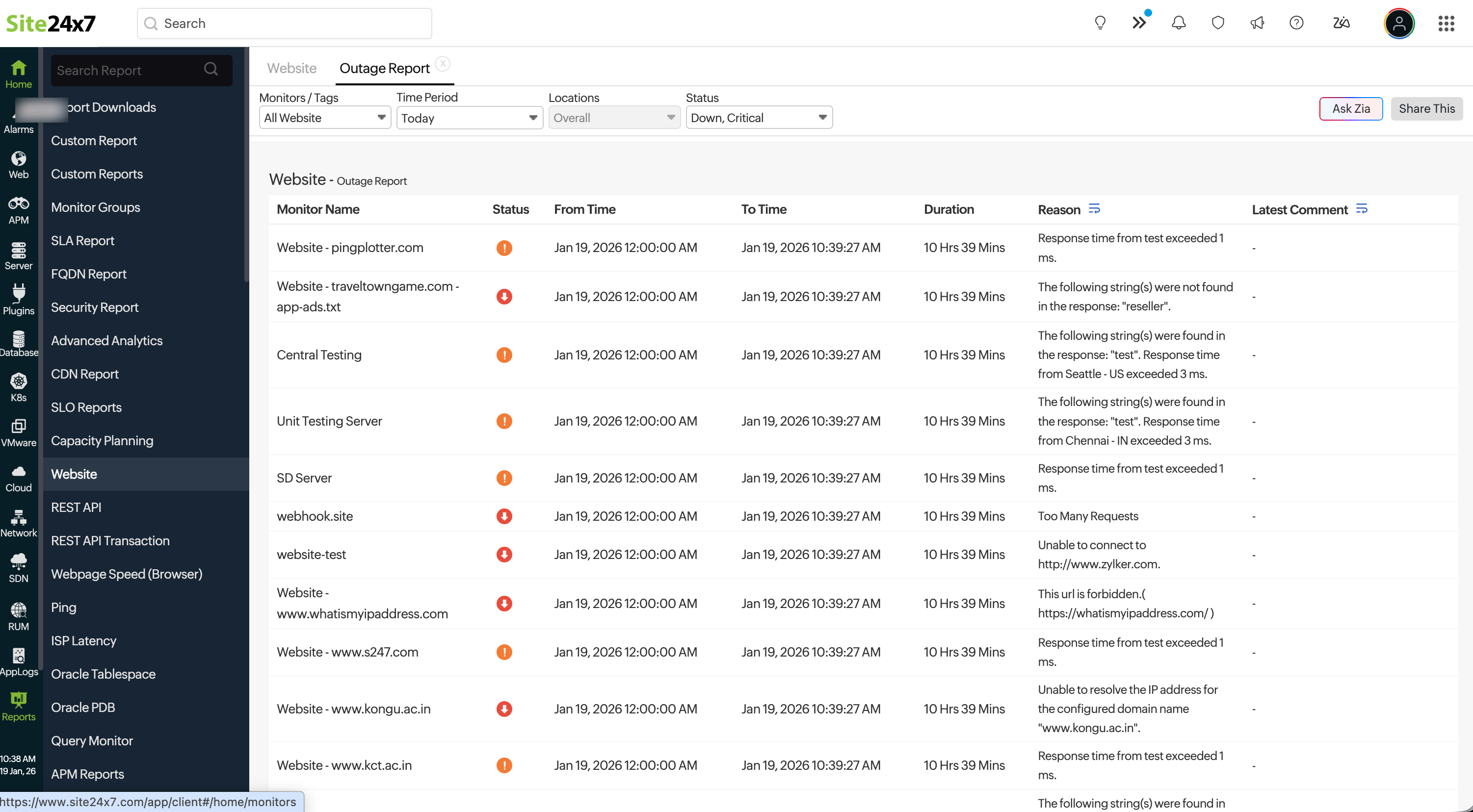 - Site24x7にログインします。